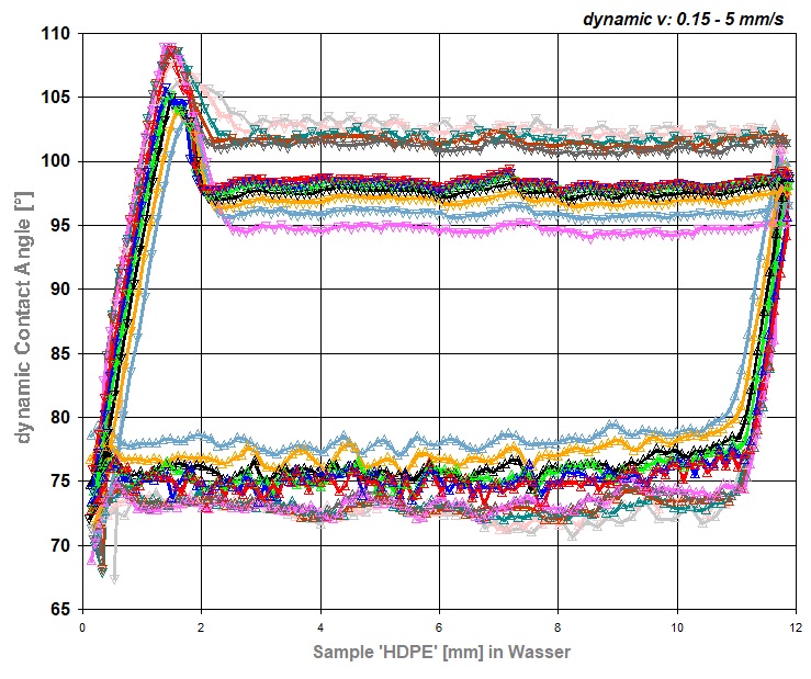 [HDPE - Wasser: Phasengeschwindigkeit moduliert Benetzbarkeit