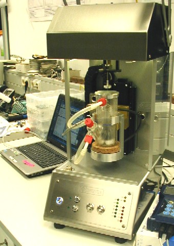 Oberflächenspannung, Temperaturabhängigkeit, Konzentrationsbestimmung und -Kalibrierung, CMC-Bestimmung; automatischer Probenwechsel; und z.B. Beimessung von Leitfähigkeit, pH, Farbe ... durch Zusatzsensoren bzw. Geräte möglich |